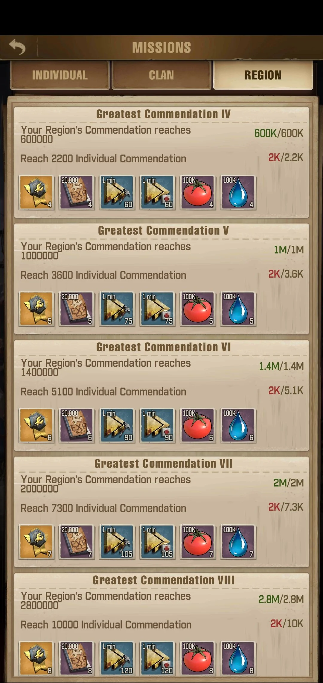 Region Commendation Rewards